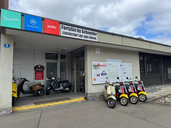 Die Garage Schneider AG tritt neu als FortySix GmbH auf. Philipp Schneider, dritte Generation, hat nach 15 Jahren einen neuen Brand etabliert. FortySix steht für die Zahl 46 – das Geburtsjahr der Vespa – sowie für die Postleitzahl unseres Standorts. Klicken Sie hier, um mehr zu erfahren.